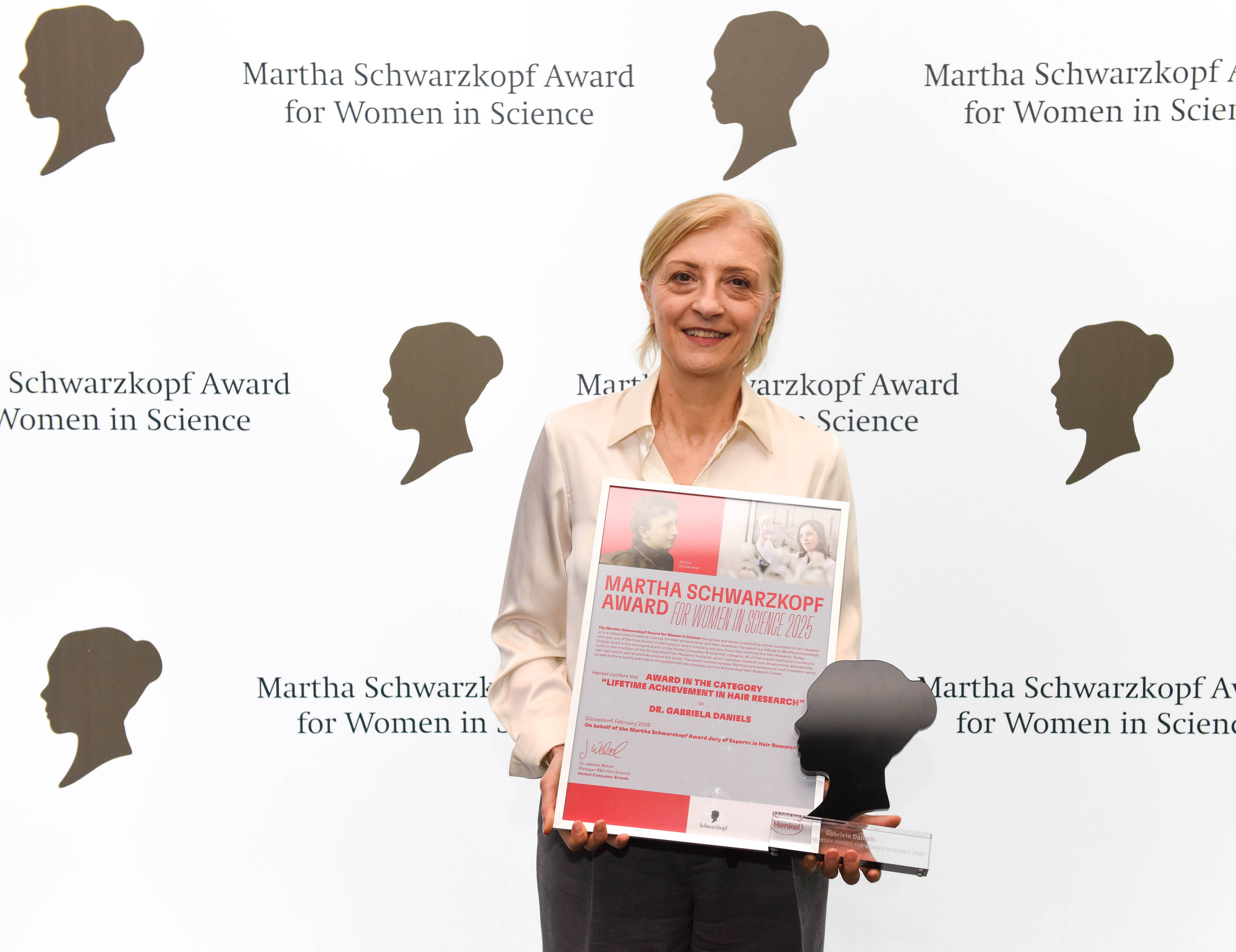 マーサ・シュワルツコフ賞は、ドイツにおいて毛髪研究の重要性を早くから見出し、その発展を積極的に支援・推進したドイツで最初期の女性起業家の1人であるマーサ・シュワルツコフを記念した賞です。現在においても、「シュワルツコフ」ブランドの技術革新はすべて、マーサ・シュワルツコフが1920年代に設立したシュワルツコフヘア研究所の伝統に根づいたものであり、同研究所の科学者たちが毛髪研究を進めてきました。今日、「シュワルツコフ」はヘンケル コンシューマーブランドのヘアカテゴリーにおける最大のブランドとなっており、世界各地で研究開発ラボ、ヘアテストサロンおよびアカデミーを運営しています。