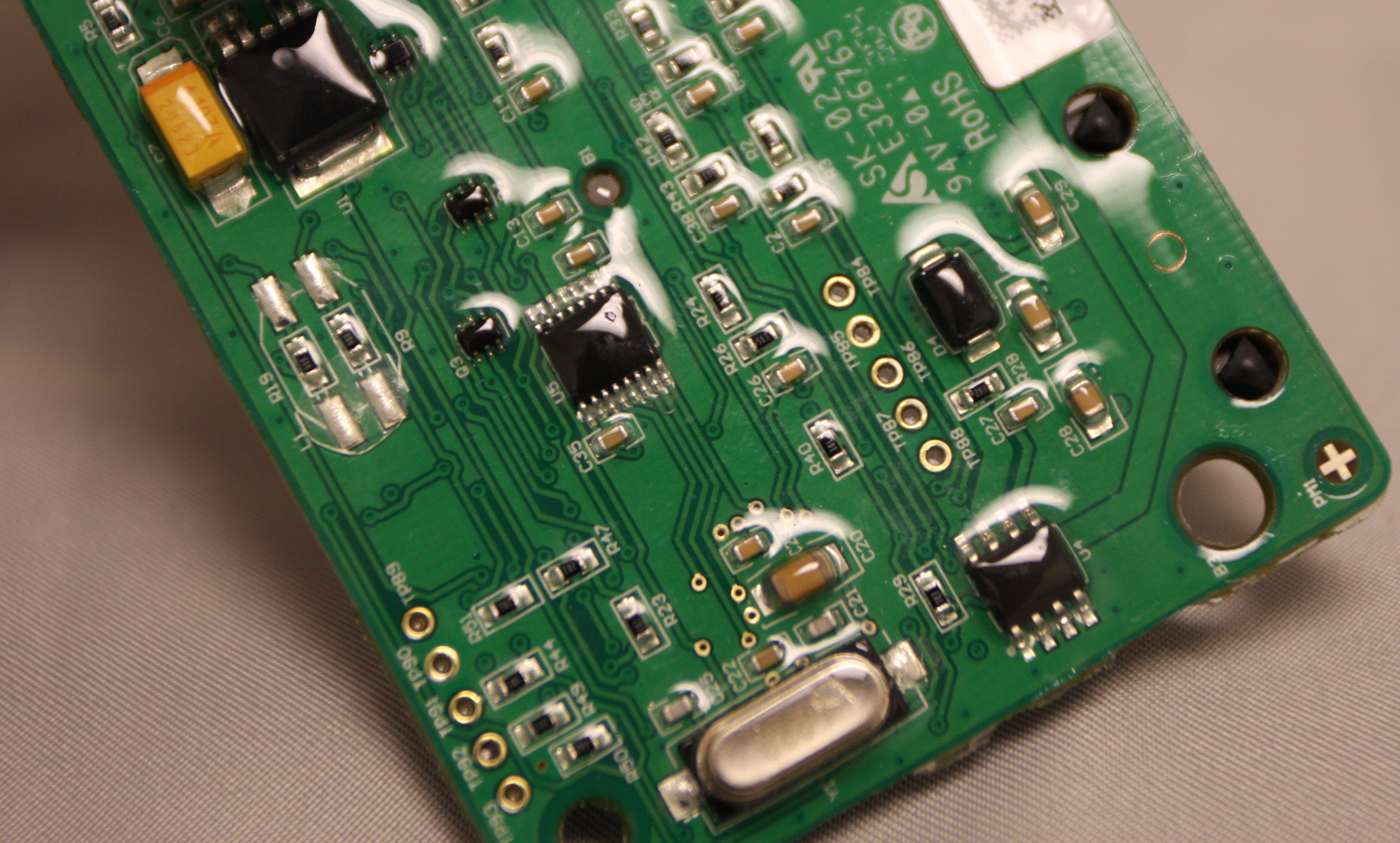 コンフォーマルコーティングは、プリント基板(PCB)や電子部品に薄く塗布される高分子材料で、湿気・ほこり・化学物質・その他の環境要因から電子機器を保護し、性能低下や製品寿命の短縮を防ぐため、さまざまな電子機器で使用されています。Loctite Stycast UV 7998 は、この重要な保護性能を実現しつつ、溶剤不使用の構成によりコスト削減と安全性・健康・環境面でのメリットを同時に提供します。